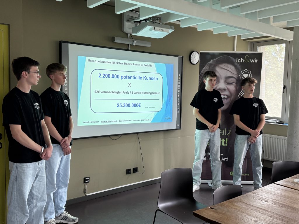 Beim Finale in München am 29. und 30.6. hat es dann nicht zu einem der vorderen Plätze gereicht, aber es war für die vier Schüler dennoch ein sehr guter Erfolg mit einer tollen Produktidee und vielen lehrreichen und schönen Erfahrungen.