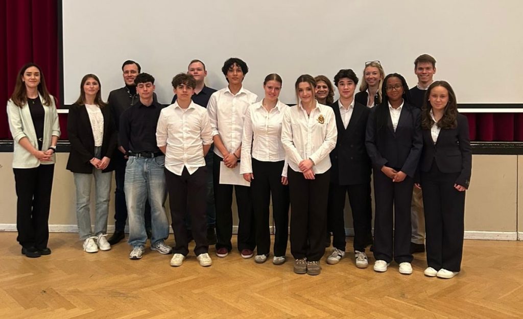 Mit ihrer Geschäftsidee „WriteRight“ entschieden die vielversprechenden Gründerinnen und Gründer von morgen den Schulentscheid von business@school am 26. März an der Leibnizschule für sich. Die glücklichen Siegerinnen und Sieger – Mariam Barry (17), Salvador Elsen (16) und Blanca Ostrowicz (17) – vertreten die Leibnizschule damit beim Pitch-Event der Bildungsinitiative der Boston Consulting Group (BCG), das ebenfalls an der Leibnizschule in Wiesbaden am 12.05.2026 stattfindet.