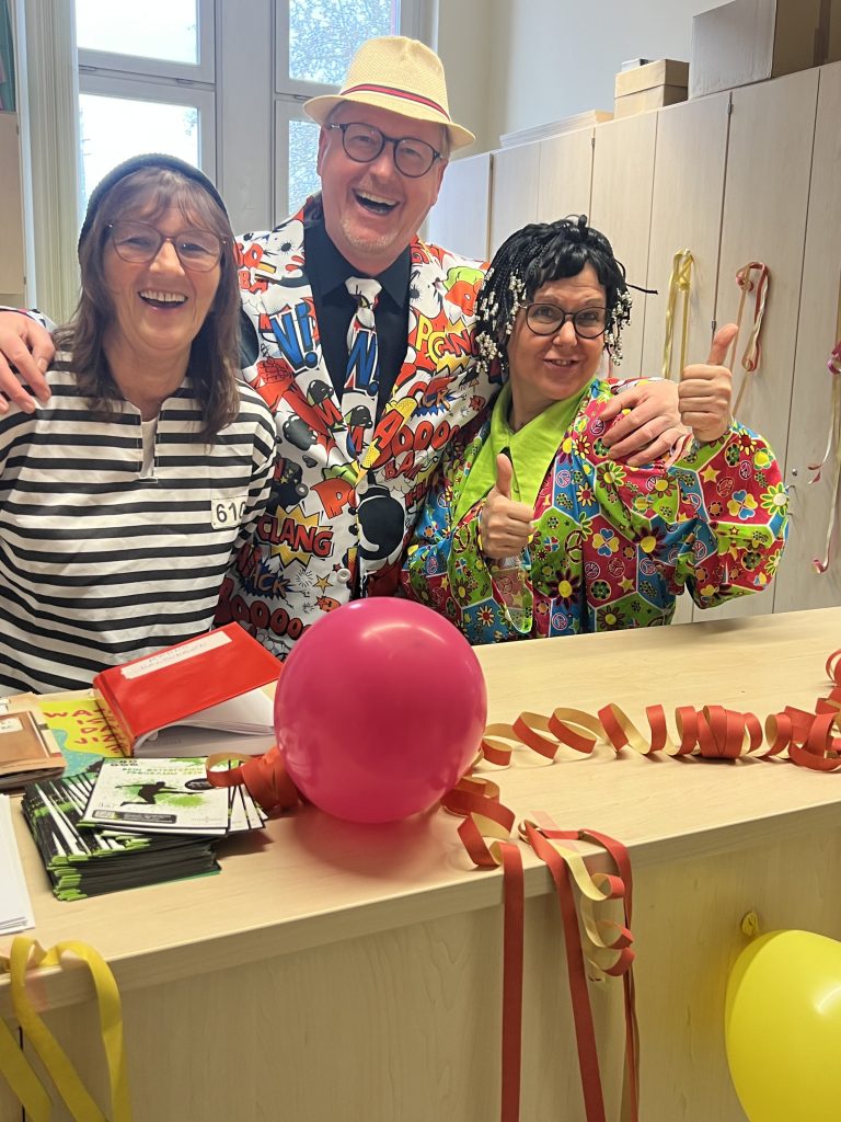 Helau und Alaaf! Schon am frühen Morgen des 12. Februars 2026 nahm das närrische Treiben im Sekretariat seinen Lauf und am Abend verwandelte sich die Aula für ein paar Stunden in die vermutlich bunteste Disco weit und breit. Grund dafür war die legendäre Schul-Faschingsdisco. Die Kostüme waren wieder einmal so kreativ, dass man teilweise zweimal hinschauen musste, um seine eigenen Freunde oder auch Lehrer zu erkennen. Da lohnt sich ein Blick auf die Fotos!!!