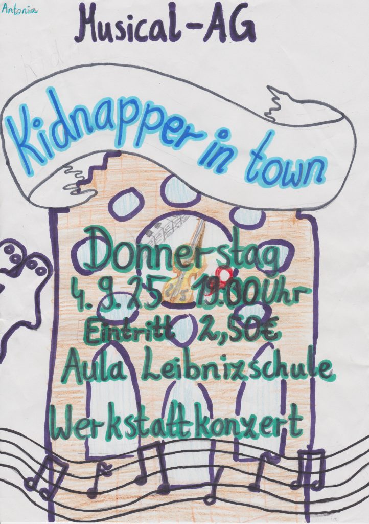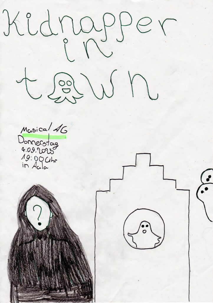 Am Donnerstag, den 4.9., findet ein Werkstatt-Auftritt der Musical-AG statt. Das Stück heißt: „Kidnapper in Town“.